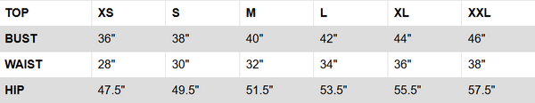 GARMENTS MEASUREMENTS IN INCHES