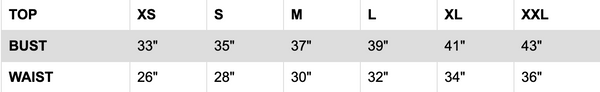 GARMENTS MEASUREMENTS IN INCHES