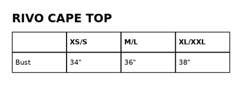 GARMENTS MEASUREMENTS IN INCHES