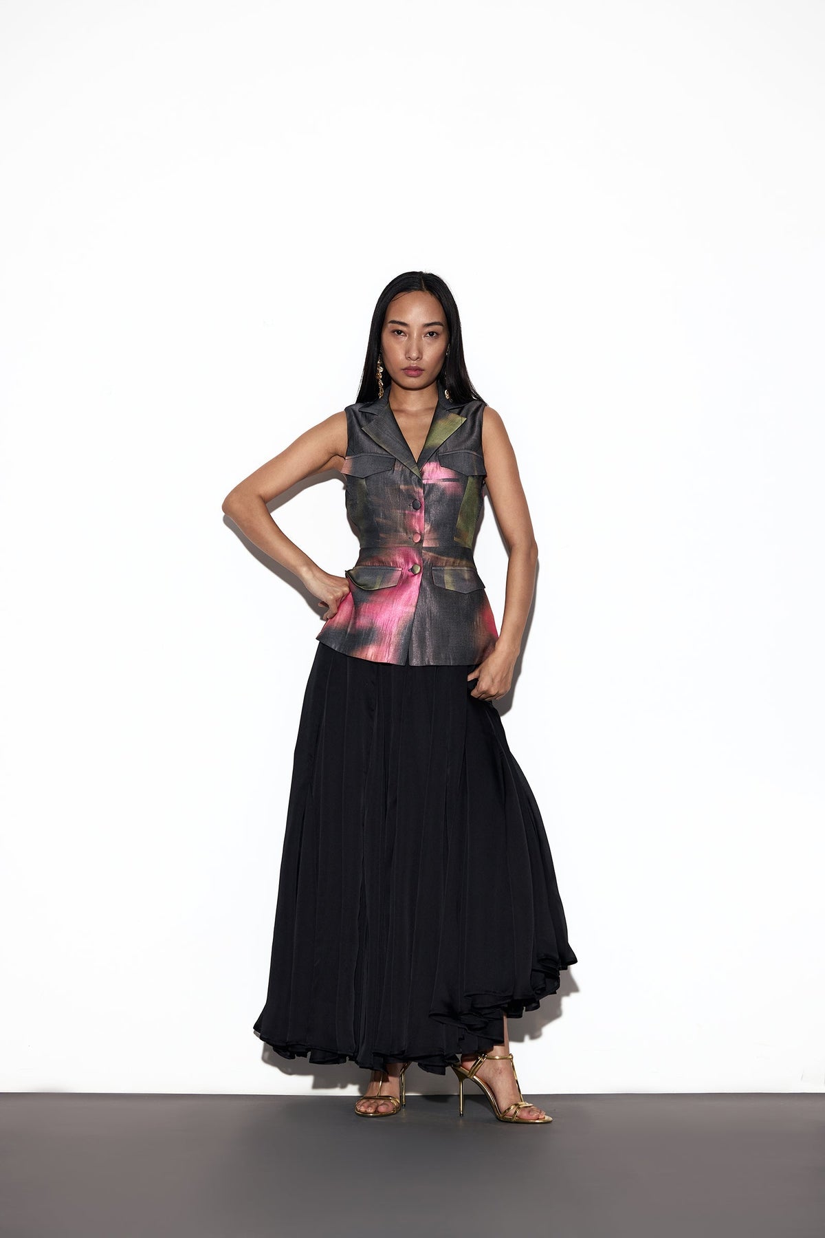 • Sleeveless silhouette with a tailored finish