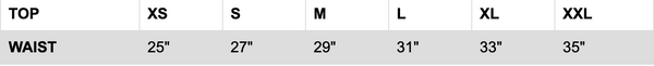 GARMENTS MEASUREMENTS IN INCHES