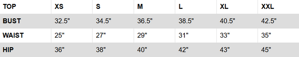 GARMENTS MEASUREMENTS IN INCHES