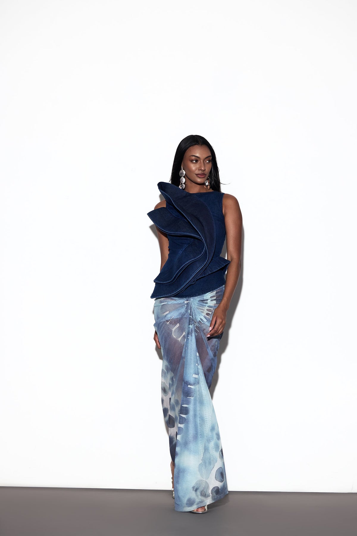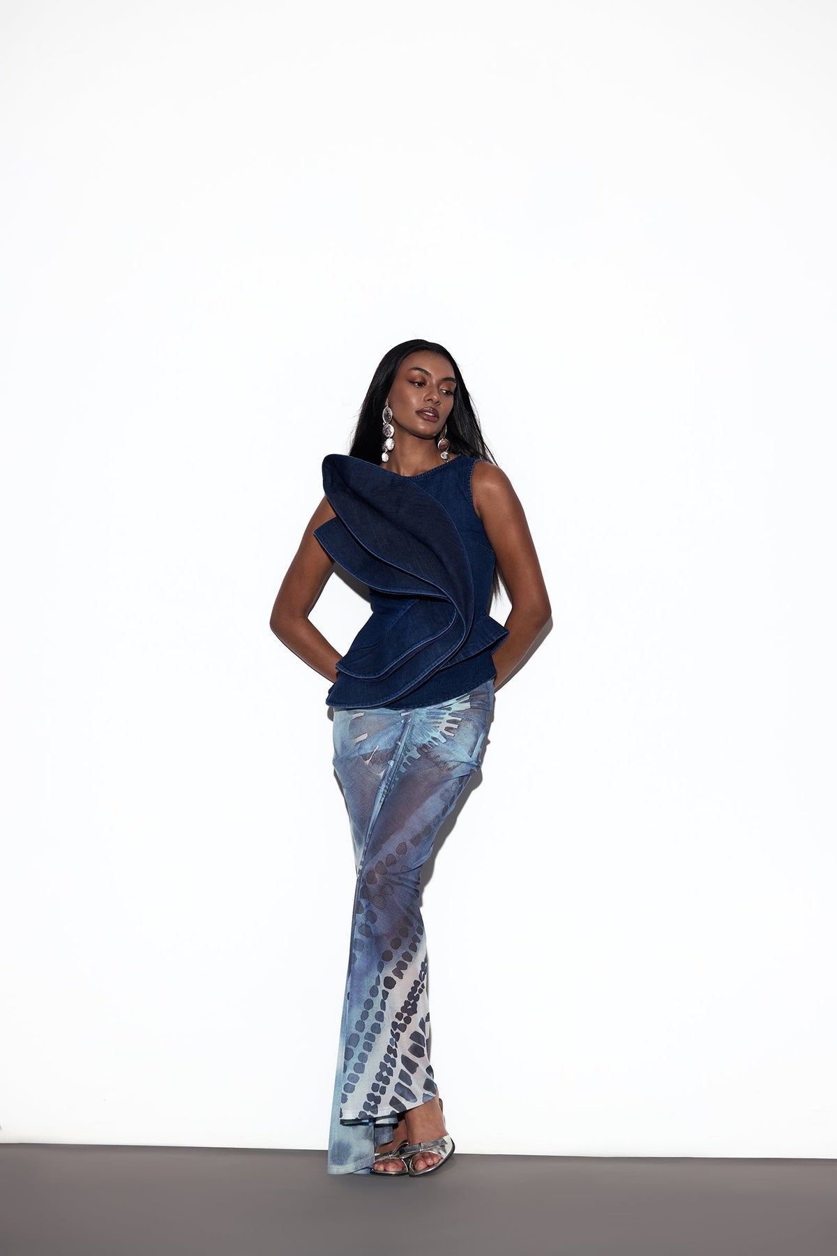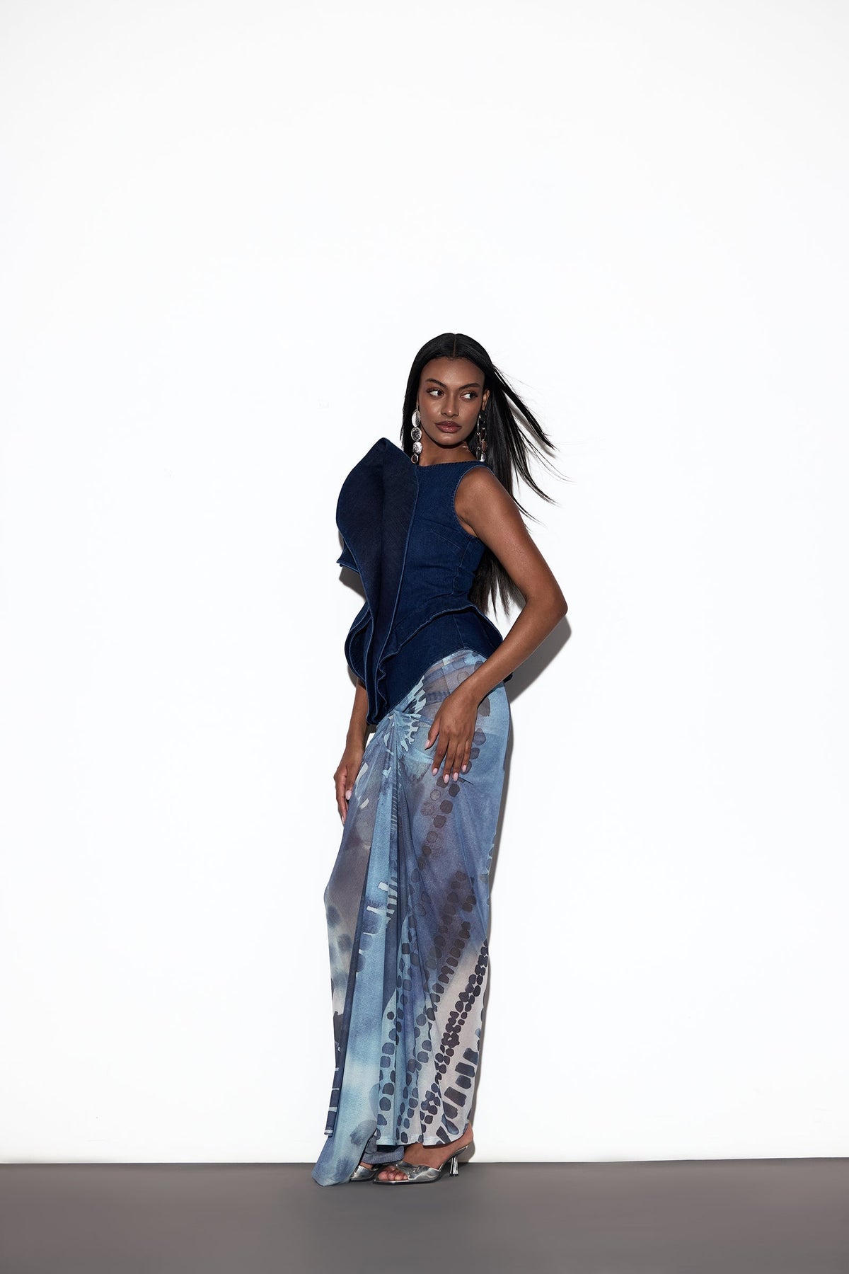 The NOZOMI TOP, a study in sculpted elegance, this sleeveless top embraces a fitted silhouette with a round neckline. An asymmetrical detail at the front creates a bold, exaggerated shape, bringing modern artistry to its clean lines. Finished with a sleek back zipper, it balances drama with refinement.