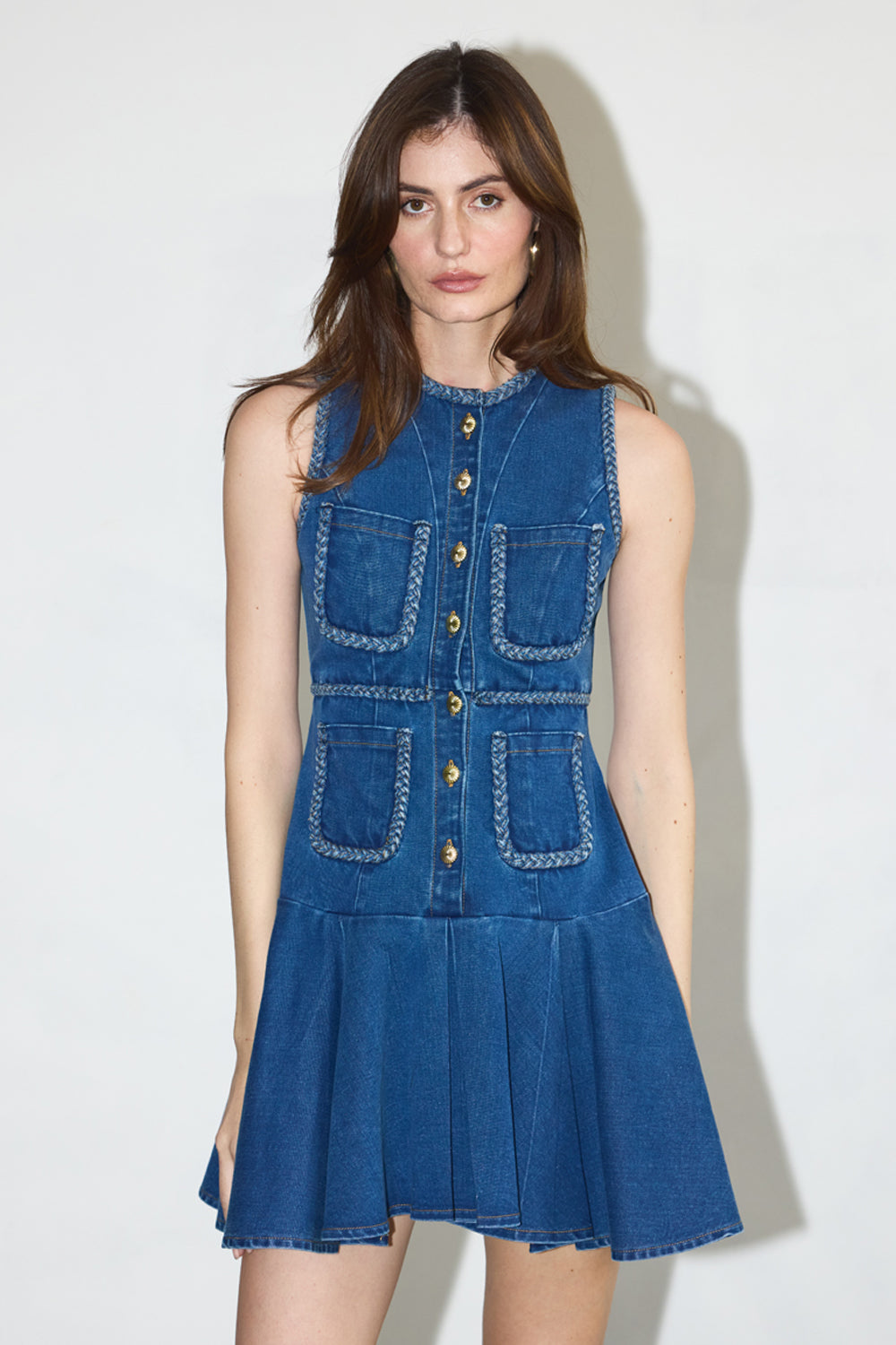 A little denim dress thatÄôs big on style. Playful yet effortlessly chic, the Dottie Denim Dress is perfect for sun-filled days and carefree nights. With a flared hem and sleek sleeveless design, itÄôs a versatile statement piece for the modern woman.